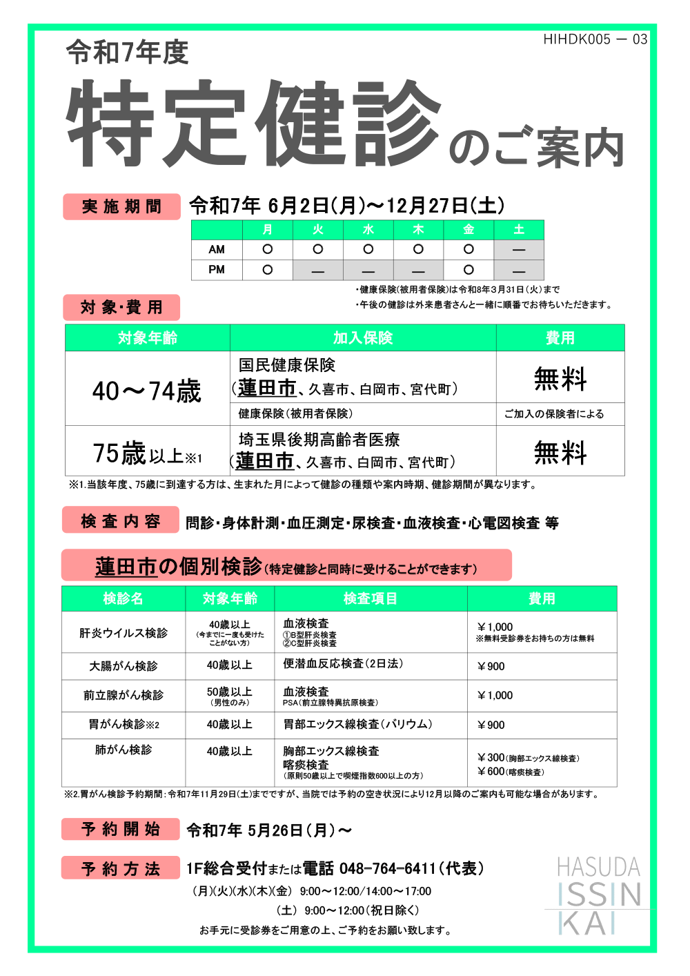 蓮田市のがん検診等 要電話予約 実施期間・費用については、市からの通知をご確認ください