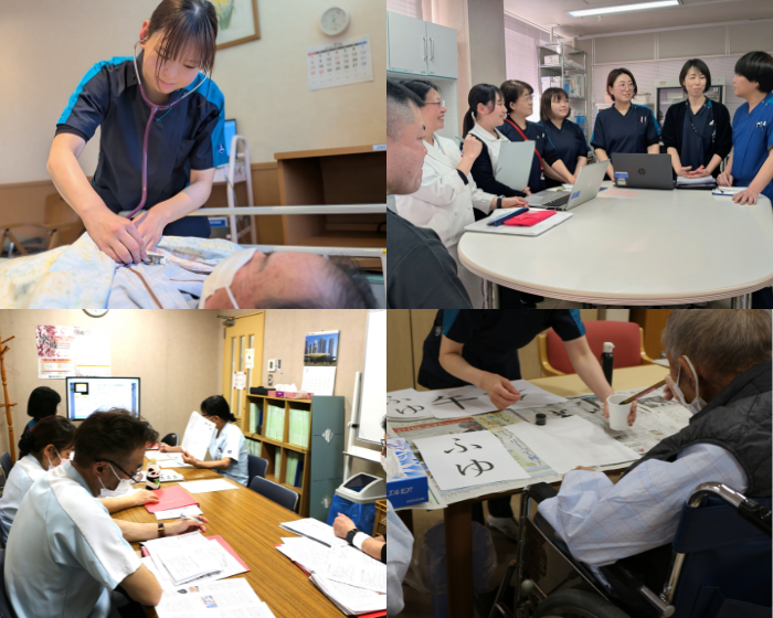 当病棟は全50床を有し、障害者病床30床、地域包括ケア病床20床で、内科・整形外科・透析の患者さんを受け入れています。安心して療養していただくために多職種で連携し、患者さんとご家族と関わっています。障害者病床では長期療養が必要な患者さんの全身管理と生活支援を行い、地域包括ケア病床では、リハビリや退院支援を通じて在宅・施設復帰を支援しております。高齢者に対しても個別的な生活機能の維持、家族を含めた精神的サポートを多職種で行っています。