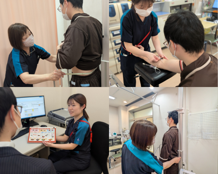 健康管理看護科は地域の皆さまをはじめ、当院で健康診断を受けられる方を対象に、各種健康診断および特定保健指導を担う部署です。健診結果をもとに、生活習慣の見直しや健康づくりについて一人ひとりに合わせた支援を行っています。必要に応じて当院での詳しい検査につなげる体制も整えており、健診後も安心してご相談いただけます。健診を日々の健康管理に活かせるようサポートしています。