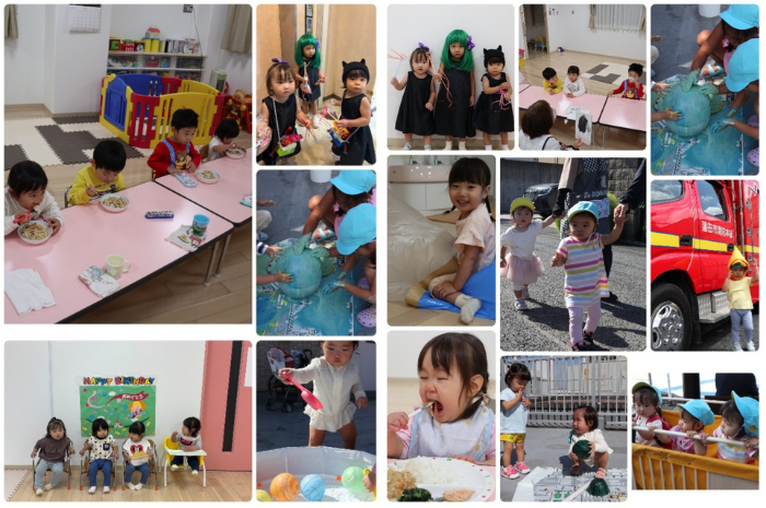 施設屋上での開放的な水遊びをはじめ、毎月のお誕生日会、避難訓練、健やかな成長を願七五三のお参り、そして本格的な仮装を楽しむハロウインなど